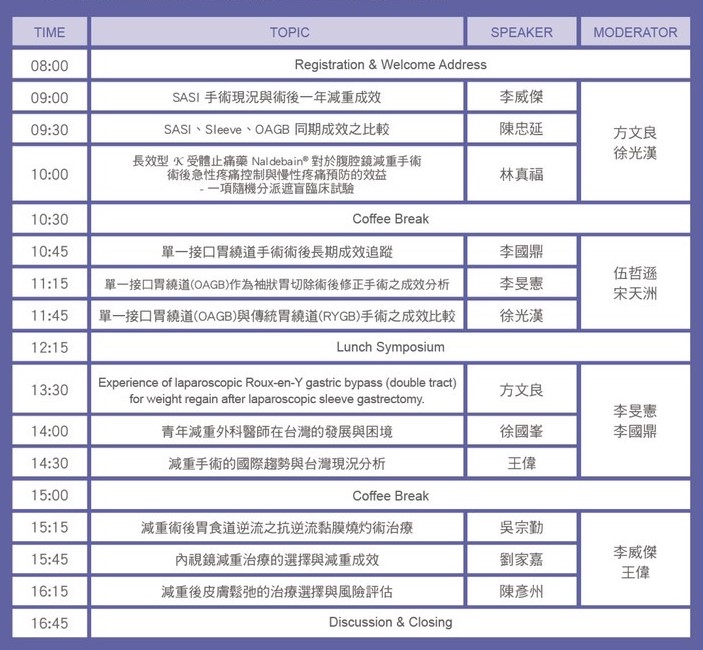 【積分申請中】台灣外科醫學會、台灣消化系外科學會、台灣消化系內視鏡醫學會、台灣內視鏡外科醫學會、台灣肥胖醫學會、西醫師、專科護理師、護理師、營養師